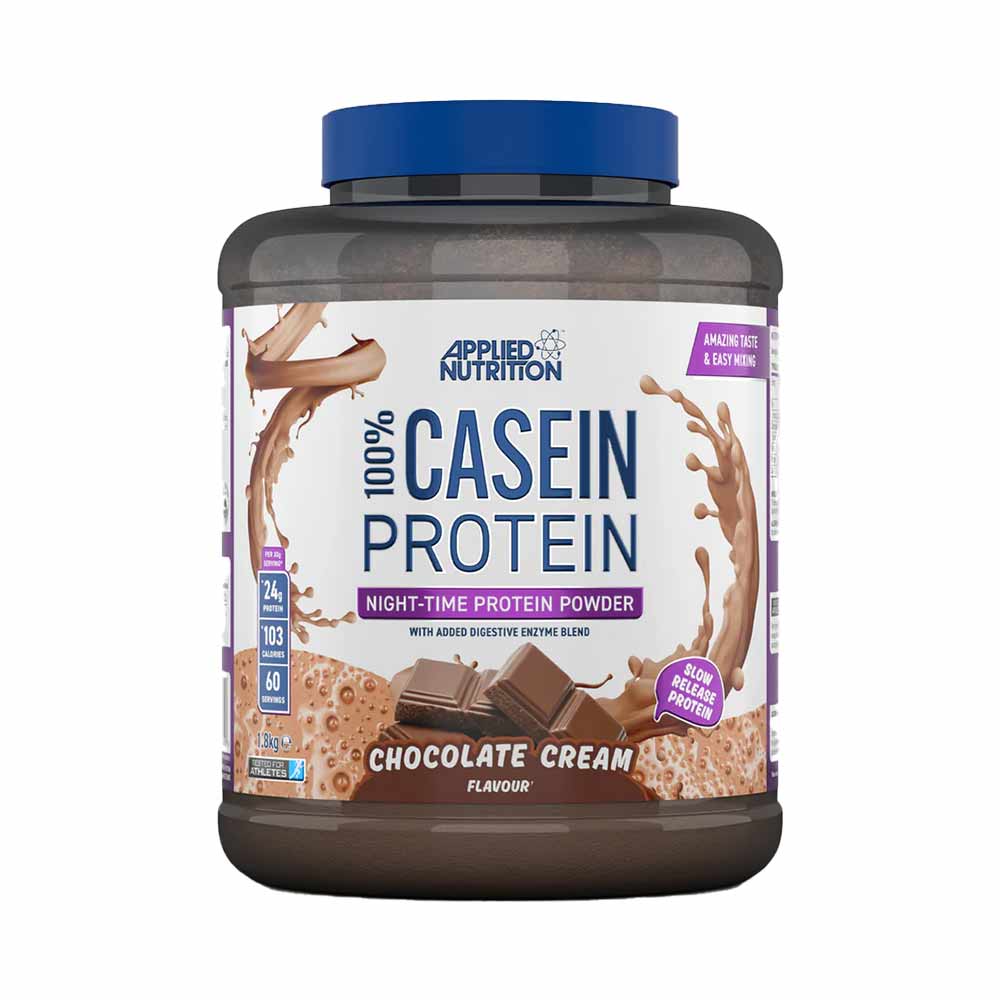 WAAROM APPLIED NUTRITION [/merk/applied-nutrition/] 100% CASEIN PROTEIN? Applied Nutrition 100% Casein Protein is essentieel voor jou als sporter of wanneer je een actieve levensstijl hebt. Je spieren hebben namelijk brandstof nodig om te herstellen na fysieke inspanningen, ook wanneer je slaapt. Daarom heeft Applied Nutrition 100% Casein Protein ontwikkeld. Deze Caseïne Micellair Eiwitten [/eiwitten/eiwitshakes/caseine-micellair-eiwit/] geven een gebalanceerde afgifte van eiwitten tot wel 7 uur, waardoor je deze prima voor het slapen gaan in zou kunnen nemen. EIGENSCHAPPEN APPLIED NUTRITION 100% CASEIN PROTEIN: * Langzaam verteerbare formule (tot 7 uur) * Bevat een compleet plaatje van aminozuren en BCAA’s * Bevat meer dan 25 gram eiwitten per portie [/aminozuren/] 100% Casein Protein bevat een compleet plaatje van aminozuren [/aminozuren/] en BCAA’s [/aminozuren/bcaa/]. Deze drie aminozuren maken één derde uit van de essentiële aminozuren en ongeveer 70 procent van het totale