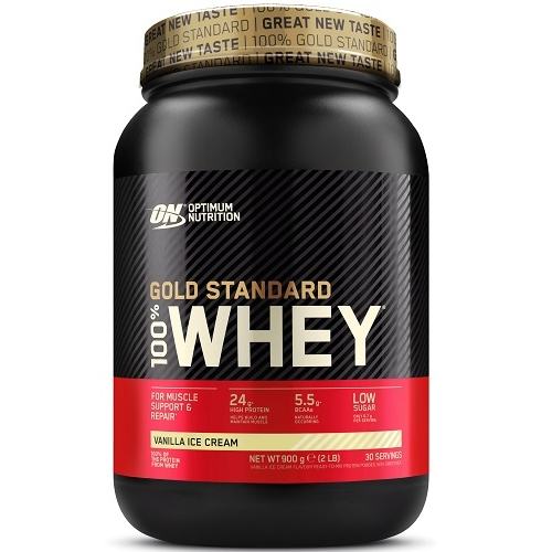 Optimum Nutrition [/merk-optimum-nutrition_36/] heeft met 100% WHEY GOLD, sinds het begin, de standaard gezet voor Whey Eiwit supplementen. WHEY GOLD STANDARD – EIGENSCHAPPEN: 100% WHEY GOLD STANDARD BEVAT EEN ZORGVULDIG GESELECTEERDEMIX VAN: * Microfiltered Whey Protein Isolates * Ion-Exchange Whey Protein Isolates * Ultrafiltered Whey Protein Concentrate * HydroWhey Hydrolyzed Whey Peptides Bovenstaande mix geeft je meer van wat je wilt (op veilige wijze geproduceerde Whey Proteine) met minder van wat je NIET wilt (deze shake is suikerarm) in elke Eiwitshake! 100% WHEY GOLD IS BETER DAN OOIT! EN WEL OM DE VOLGENDE REDENEN: * 100% Whey Gold Standard bevat meer Whey Eiwit Isolaat * Hoger Eiwit percentage. Optimum Nutrition 100% Whey Gold Standard is altijd de leider geweest in dit opzicht. Nu met 24 gram Eiwit per dosering, dit komt erop neer dat 80% van zijn gewicht uit Eiwitten bestaat. * Whey Gold is uitgerust met HydroWhey, lage moleculaire Whey Peptides die ervoor zorgen dat