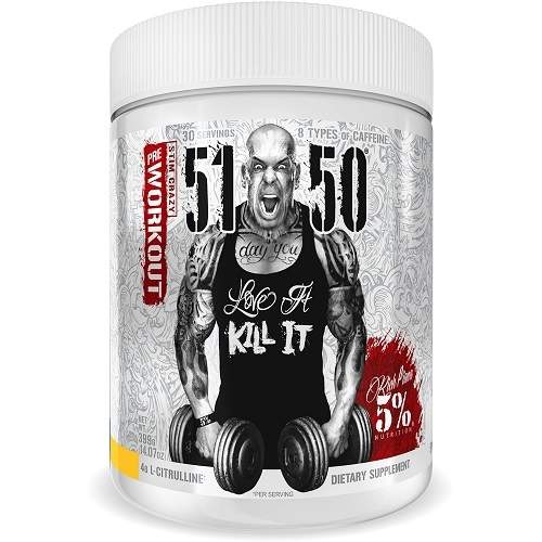5150 LEGENDARY van 5% NUTRITION RICH PIANA is de bekende 5150, met een verbeterde formule! 5150 LEGENDARY 5% NUTRITION RICH PIANA EIGENSCHAPPEN: 5150 ondersteunt door zijn twee toegevoegde Vitamines, B3 en B12, je energieniveau. Maar 5150 doet meer. Dit allemaal door zijn hoog gedoseerde ingrediënten, ook nog eens met een geweldige smaak en het is makkelijk mengbaar. Naast bekende actieve ingrediënten als 4000 mg L-citrulline, 2500 mg beta-alanine 2000 mg L-taurine bevat iedere portie van deze pre-workout ook 500 mg choline bitartraat en 750 mg N-acetyl L-tyrosine. Ga jij ook voor het maximale? Probeer dan nu de nieuwe 5150 Legendary Pre Workout van 5% Nutrition Rich Piana! 5150 LEGENDARY 5% NUTRITION RICH PIANA KENMERKEN: * Verkrijgbaar in verrassende smaken * 30 servings * Hoogwaardige ingrediënten * Hoog gedoseerd LET OP: pre-workouts kunnen ingrediënten bevatten die vocht opnemen uit de lucht in het potje. Het poeder kan hierdoor wat harder / korreliger worden. Dit tast de werking