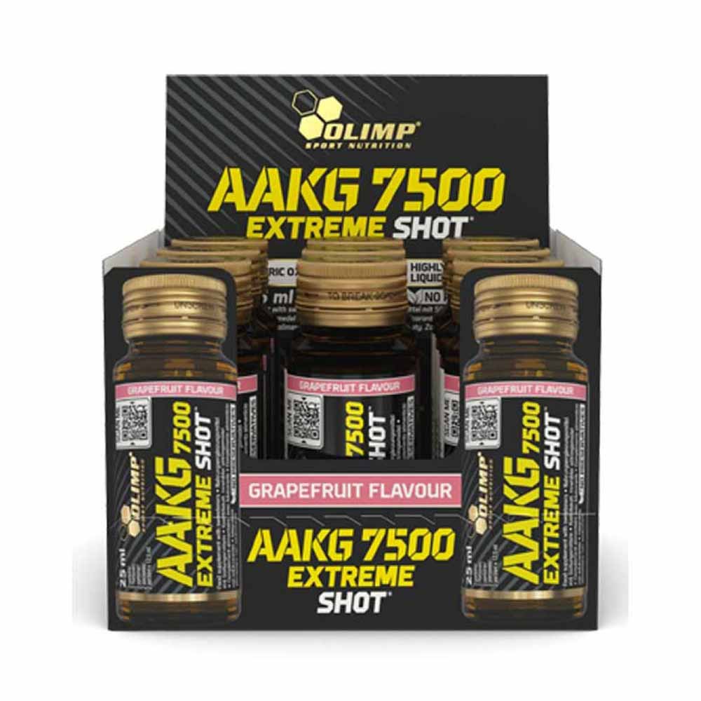 AAKG 7500 EXTREME SHOT van OLIMP geeft je een megadosis AAKG van 7500mg per ampul! AAKG 7500 EXTREME SHOT EIGENSCHAPPEN: Dit supplement is ideaal voor mensen die een hoge dosis AAKG willen, zonder veel pillen of capsules te moeten slikken. Ook hebben deze ampullen een heerlijke Cherry of Grapefruit smaak. AAKG 7500 EXTREME SHOT KENMERKEN: * 7500mg Arginine Alpha KetoKlutaraat (AAKG) per ampul * 9 ampullen * Cherry of Grapefruit smaak