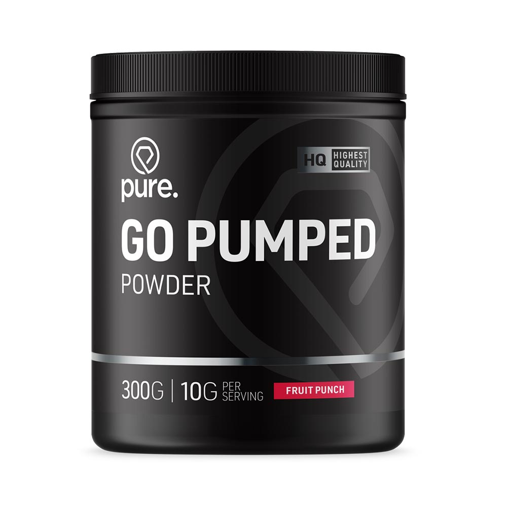 GO PUMPED POWDER van PURE is een zeer krachtig product voor tijdens of voor een training! Ben jij er klaar voor?! PURE GO PUMPED POWDER EIGENSCHAPPEN: Ben jij opzoek naar die extra pump tijdens het trainen? Dan is PURE Go Pumped Powder echt iets voor jou! Go Pumped Powder onderscheid zich van alle andere pre-workouts door alleen gebruik te maken van hoogwaardige ingrediënten en geen overbodige vulstoffen. PURE Go Pumped Powder bevat geen cafeïne. Je kunt het product daardoor veel makkelijker innemen! INGREDIËNTEN PURE Go Pumped Powder bevat onder andere: Citrulline Malaat, L-Arginine, Taurine, Beta Alanine, vitamine C en vitamine B12. INGREDIËNTEN TOEGELICHT; Citrulline is een aminozuur dat in je lichaam wordt omgezet naar Arginine. Aminozuren zijn de bouwstenen van eiwitten. Veel sporters zijn positief over de werking van hun Citrulline supplement. Arginine is een veel gebruikt aminozuur onder sporters. Het is een aminozuur dat je lichaam zelf in een beperkte mate kan aanmaken, het