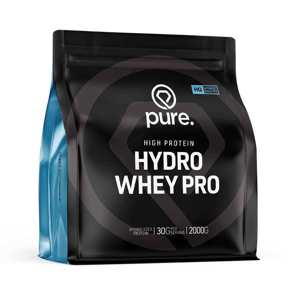 Met PURE HYDRO WHEY PRO worden eiwitten extra snel door je lichaam opgenomen, perfect voor elk trainingsdoel! PURE HYDRO WHEY PRO EIGENSCHAPPEN: Met PURE Hydro Whey Pro verhoog je jouw eiwitinname op de meest zuivere manier verkrijgbaar in de markt! Iedere portie bevat een eiwitgehalte van maar liefst 89,3%! Met onze vanille smaak maak je heerlijke ontbijt of herstel shakes die speciaal uitgebalanceerd zijn voor jouw fitnessdoelen! WAAROM PURE HYDRO WHEY PRO? PURE Hydro Whey Pro bestaat grotendeels uit gehydroliseerd whey isolaat [/eiwitten/eiwitshakes/whey-eiwit-hydrolisaat/] van de hoogste kwaliteit! Hierdoor geniet je van de voordelen van eiwitten zonder een hoog gehalte aan vetten en koolhydraten te consumeren. Verder bevat PURE Hydro Whey Pro een perfecte verhouding aan BCAA’s [/aminozuren/bcaa/]. Deze aminozuren zijn één van de belangrijkste bouwstenen voor het aanmaken van eiwitten. Eiwitten [/eiwitten/] dragen bij tot de groei van spiermassa en ondersteunen snel herstel van de