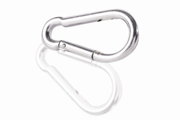 Een 80 mm Karabijner Haak voor bijvoorbeeld het bevestigen van accessoires aan krachtstations en pulleys.