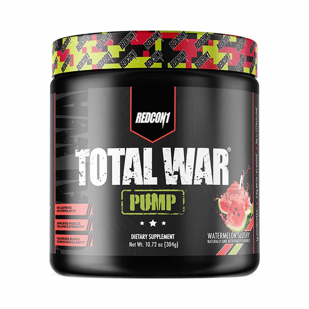REDCON1 TOTAL WAR PUMP is een krachtige, cafeïnevrije pre-workout voor een intensieve training, ideaal, ook laat op de dag. REDCON1 TOTAL WAR PUMP EIGENSCHAPPEN: De Total War Pump van Redcon1 is een pre-workoutformule zonder cafeïne, ontworpen voor sporters die goed willen trainen tijdens late trainingssessies. Deze variant is ideaal voor wie op zoek is naar een trainingservaring zonder stimulerende middelen. De formule bevat zorgvuldig geselecteerde ingrediënten zoals L-Citrulline, Beta-Alanine en HydroMax®, in royale hoeveelheden per portie. Deze samenstelling maakt Total War Pump tot een populaire keuze onder fanatieke sporters. Dankzij het ontbreken van cafeïne is het ook geschikt voor gebruik in de avond, zonder dat het je nachtrust verstoort. De pre-workout is beschikbaar in verschillende verfrissende fruitsmaken, wat het gebruik tot een aangename ervaring maakt. REDCON1 TOTAL WAR PUMP KENMERKEN: * Cafeïnevrije pre-workout * Ideaal voor avondtrainingen * 20 porties per verpakking