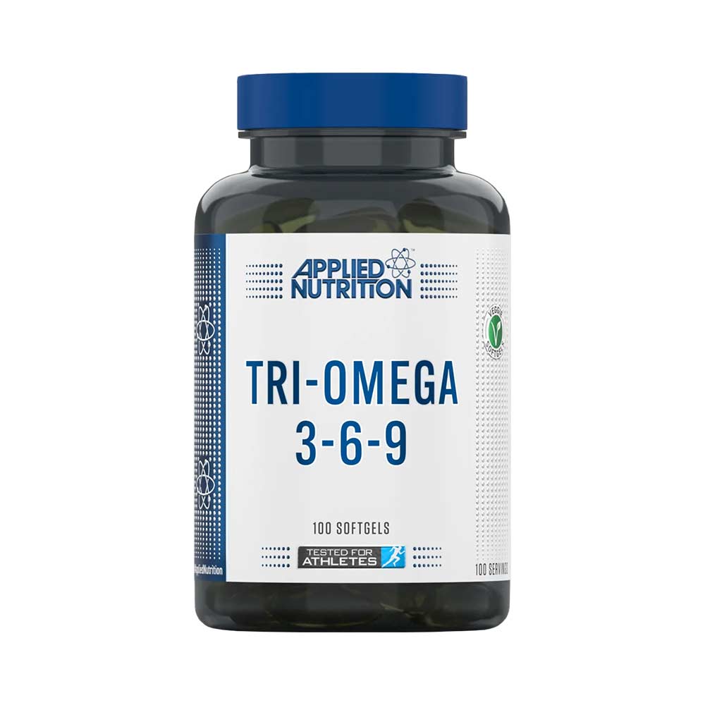 TRI OMEGA 3-6-9 EIGENSCHAPPEN: De Tri-Omega 3-6-9 van Applied Nutrition biedt een uitgebalanceerde combinatie van omega-3 [/voedingssupplementen/vetzuren/omega-3/], omega-6 en omega-9 vetzuren uit diverse natuurlijke bronnen. Elke softgel is zorgvuldig samengesteld om een optimale mix van essentiële vetzuren [/voedingssupplementen/vetzuren/] te leveren. Iedere softgel van Applied Nutrition's Tri-Omega 3-6-9 bevat 400 mg hoogwaardige visolie, rijk aan EPA [/voedingssupplementen/vetzuren/omega-3/] (18%) en DHA [/voedingssupplementen/vetzuren/omega-3/] (12%), samen met 300 mg lijnzaadolie [/superfood/zaden/lijnzaad/], met een indrukwekkend gehalte van 50% ALA [/voedingssupplementen/vetzuren/alpha-lipoic-acid-ala/]. Daarnaast is er 290 mg zonnebloemolie toegevoegd, waardoor een uitgebalanceerd profiel van essentiële vetzuren wordt geboden. Als bonus is elke softgel verrijkt met 10 mg vitamine E [/vitamine/vitamine-e/], een krachtige antioxidant die helpt bij het behouden van de kwaliteit
