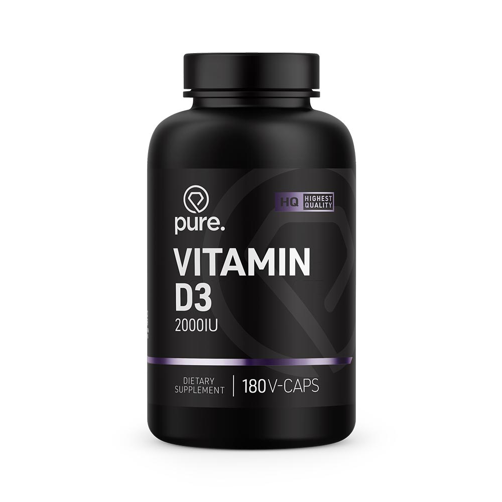 Met de PURE VITAMINE D3 2000IU ervaar je eenvoudig de voordelen van vitamine D3! PURE VITAMINE D3 2000IU EIGENSCHAPPEN: Met de PURE Vitamine D3 2000IU capsules is een tekort op dit geweldige vitamine verleden tijd. Vitamine D3 is waarschijnlijk één van de meest gebruikte vitamines onder sporters. En dit is natuurlijk niet zonder reden, vitamine D3 zit namelijk bomvol met voordelen voor jouw lichaam! Je lichaam maakt vitamine D3 voornamelijk zelf aan onder invloed van zonlicht. Hiernaast haal je het ook uit vette vis, vlees en eieren. Met de PURE Vitamine D3 2000IU capsules kan je overal eenvoudig meer van deze vitamine [/vitamine/] binnen krijgen. Vitamine D3 ondersteunt de botten en helpt bij het celdelingsproces. Verder heeft het een positieve invloed op het immuunsysteem en is het van belang voor het behoud van sterkte tanden. Daarnaast speelt vitamine D3 een rol bij het behouden van sterke en soepele spieren. Behoefte aan een hogere of lagere dosis vitamine D3? Bekijk dan ook eens