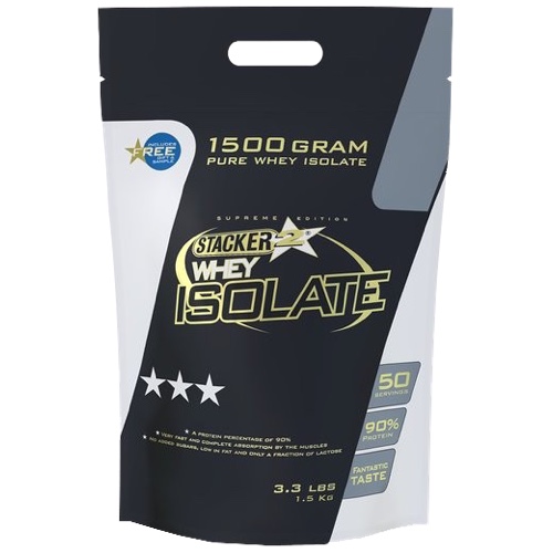 WHEY ISOLATE van STACKER2 is de meest geavanceerde Proteïne binnen de Stacker2 product range, met o.a. een Eiwitpercentage van maar liefst 90%! WHEY ISOLATE STACKER2 EIGENSCHAPPEN: Eiwitten zijn voor het behoud van sterke botten en dragen bij tot de groei van de spiermassa, maar dragen ook bij tot de instandhouding van de spiermassa. Een Eiwitpercentage van maar liefst 90%, de beste smaak in de markt en een maximale (volledige) oplosbaarheid, maken Whey Isolate van Stacker tot de beste keuze die je als topsporter kan maken. Lees vooral verder om te zien wat Whey Isolate zo uniek maakt! Stacker2 Whey Isolate is een uitstekende bron van de meest geschikte Aminozuren: 6,0 gram BCAA’s per shake 2,8 gram Leucine per shake 4,8 gram Glutamine per shake EEN SMAAKSENSATIE Stacker2 Whey Isolate behoort niet alleen qua productkwaliteit en hoog Eiwitgehalte tot de beste supplementen in ons assortiment, maar zeker ook qua smaak, romigheid en oplosgedrag. Een overheerlijke shake zonder klonten en
